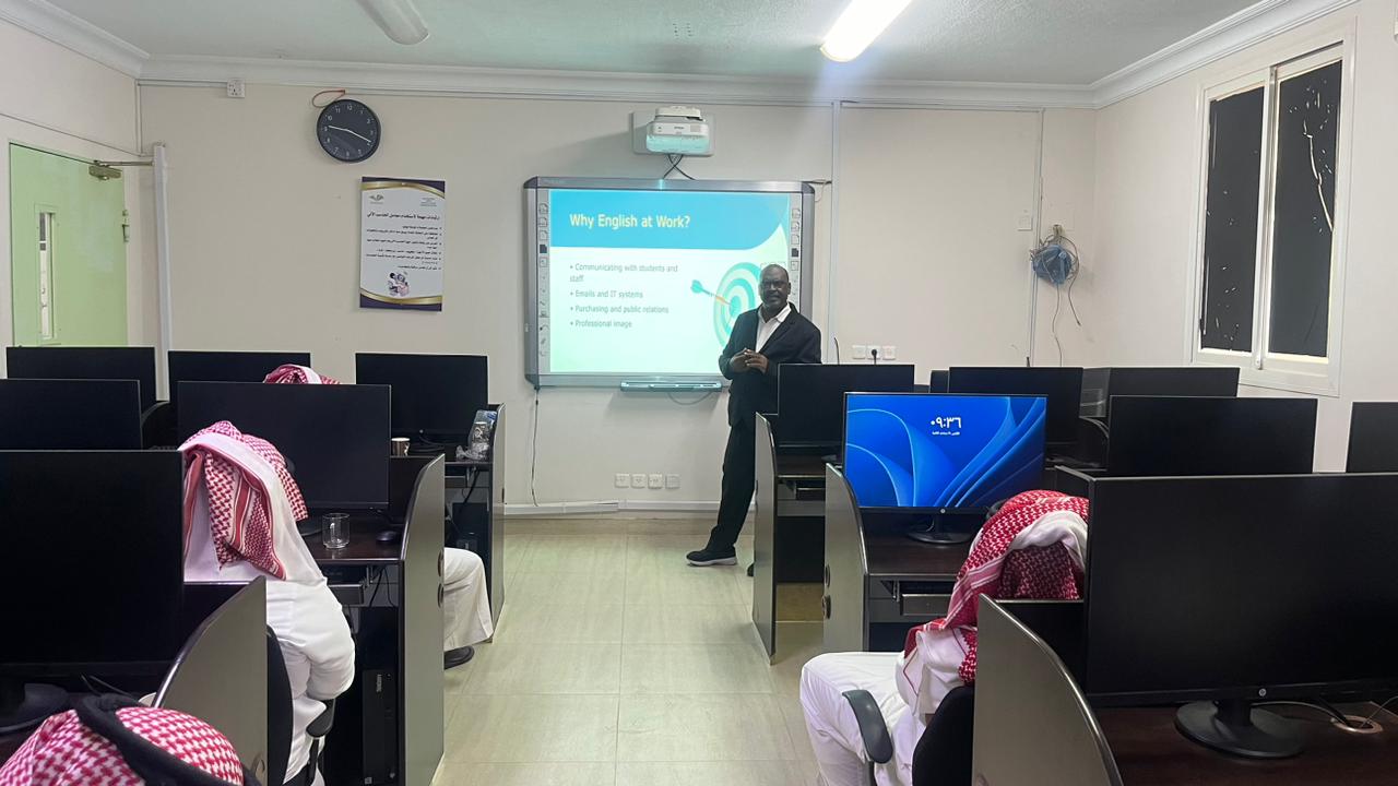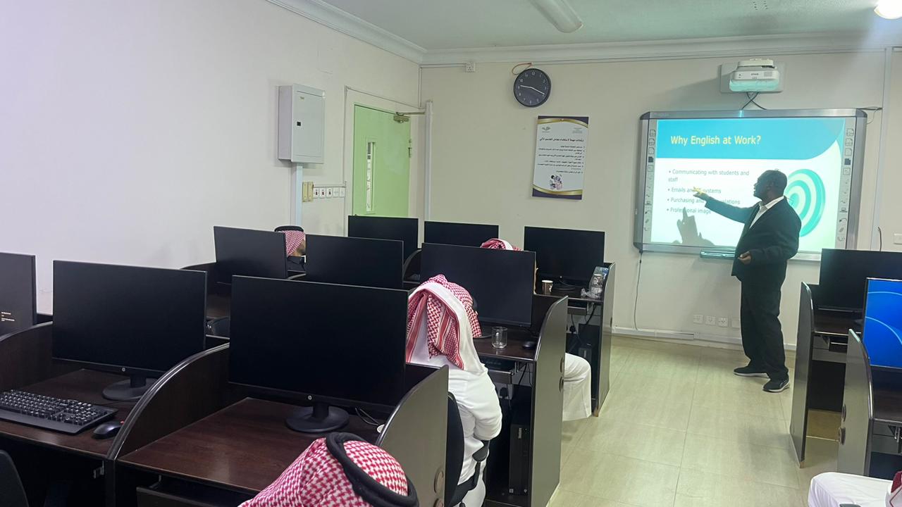 نظمت الكلية يوم الأربعاء 26/6/1447هـ دورة تدريبية في اللغة الإنجليزية لموظفيها، قدّمها د. عبدالعزيز السنوسي، وركزت على أهمية إتقان اللغة الإنجليزية في بيئة العمل.