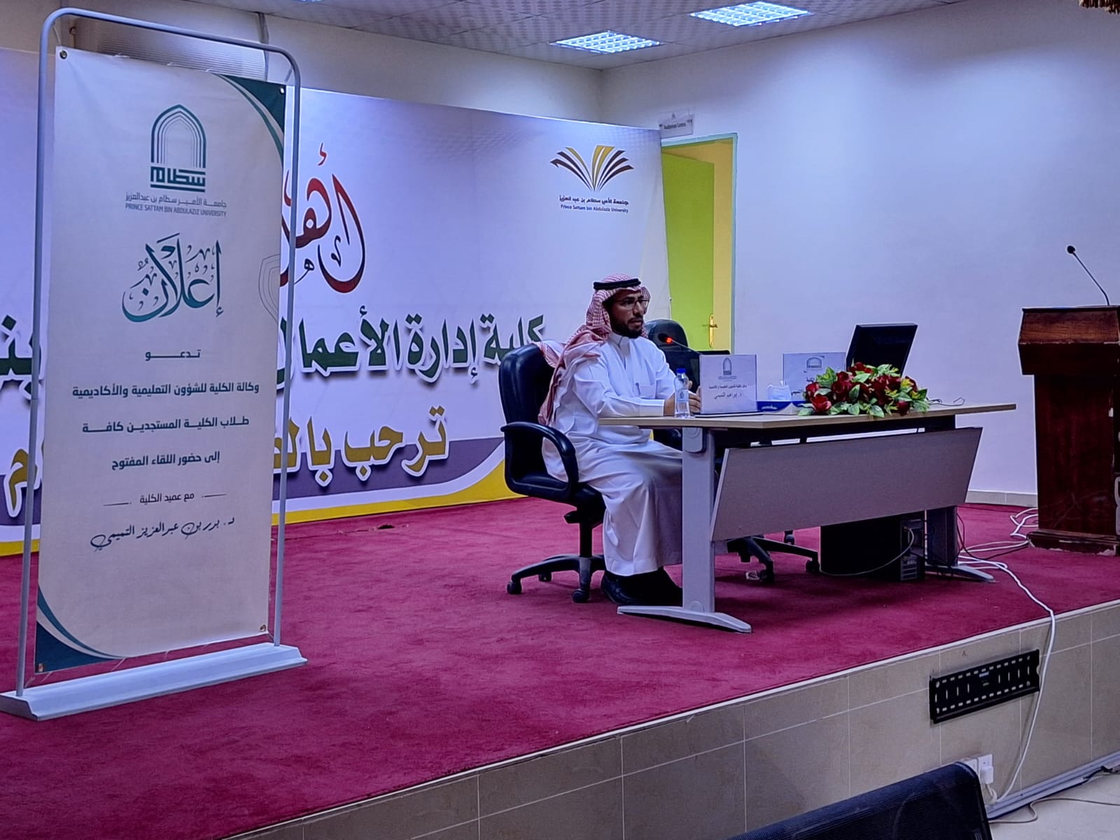 التقى عميد الكلية د. بدر بن عبدالعزيز التميمي بالطلاب المستجدين، يوم الاثنين ١٤٤6/٢/2٢هـ.
