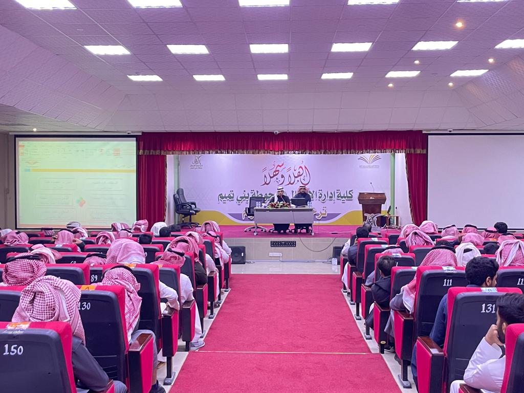 بعد ذلك تناول وكيل الكلية للشؤون التعليمية والأكاديمية د. إبراهيم آل مسلّم التميمي آليّة الغياب والحرمان، وكيفية احتساب ذلك، وعن طريقة الاعتذار عن المقرر أو الفصل، أو تأجيل الفصل، وطريقة التقديم لذلك، وبيان موعده.