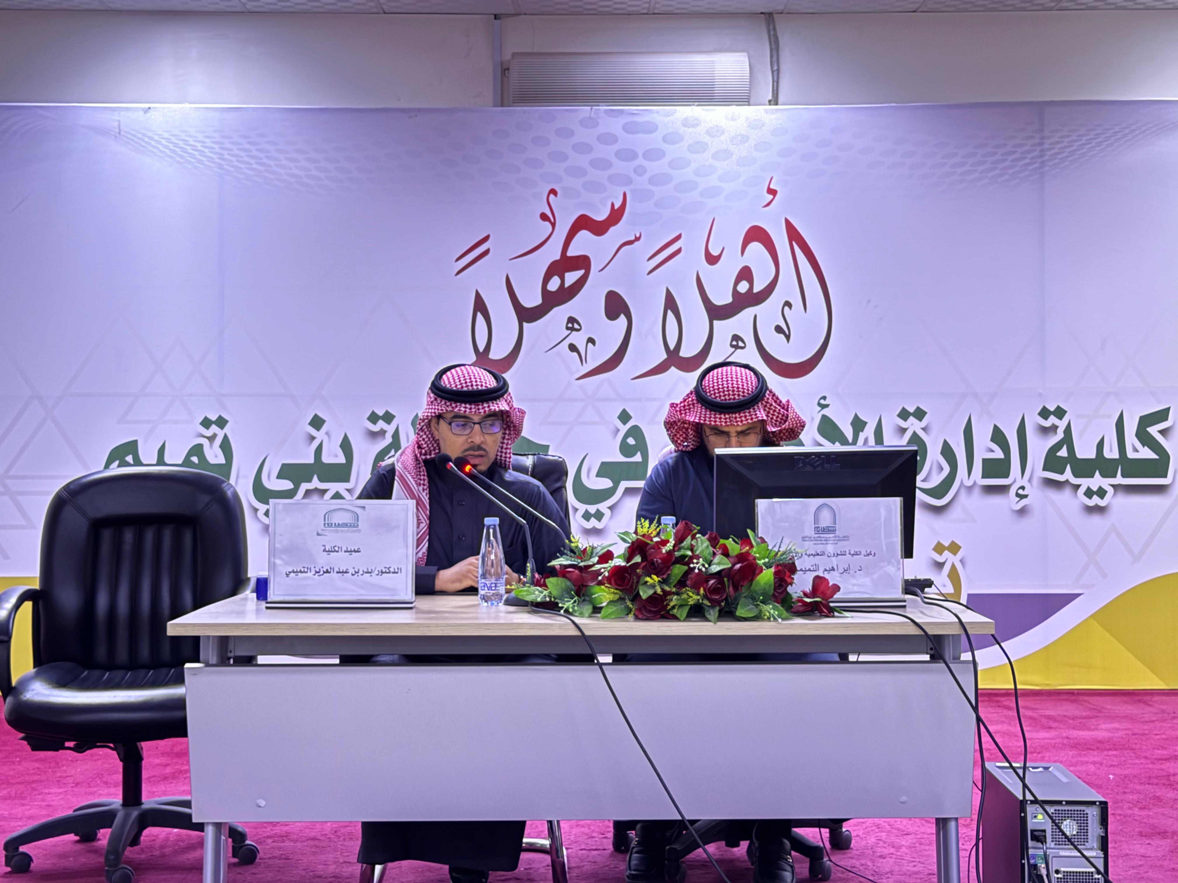 التقى عميد الكلية د. بدر بن عبدالعزيز التميمي بالطلاب المستجدين، يوم الثلاثاء 1446/7/21هـ.