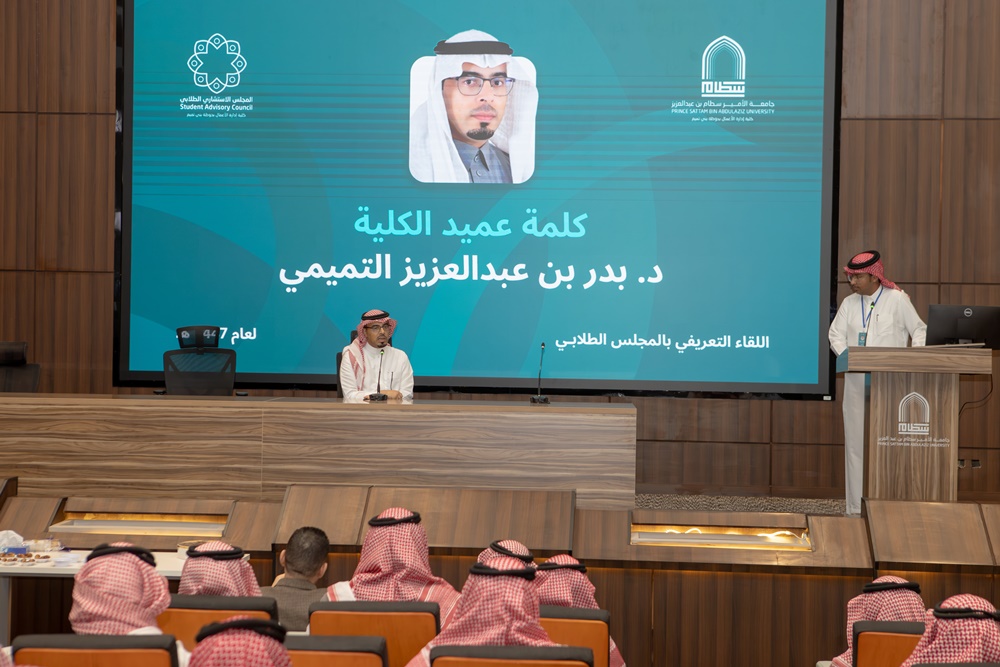 أقامت الكلية لقاء التعريفي بالمجلس الطلابي، بحضور عميد الكلية الدكتور بدر بن عبدالعزيز التميمي ووكيل الكلية الدكتور إبراهيم التميمي وعدد من أعضاء هيئة التدريس والطلاب.