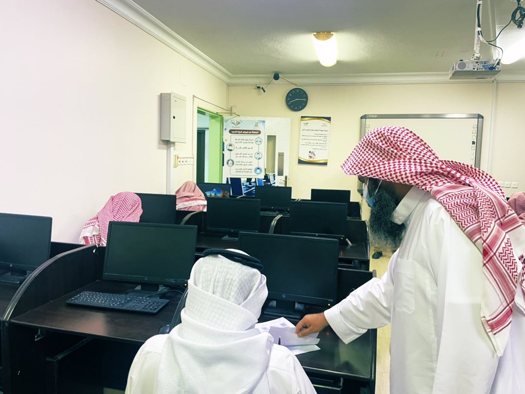قام عميد الكلية د. إبراهيم بن محمد الداود بجولة تفقدية؛ لمتابعة إجراءات اختبارات الفصل الأول النهائية للملتحقين ببرنامج (الدبلوم) العالي للمهارات الرقمية، والاطمئنان على سيرها، يومَ يالأحد ١٤٤٣/٩/٢هـ.