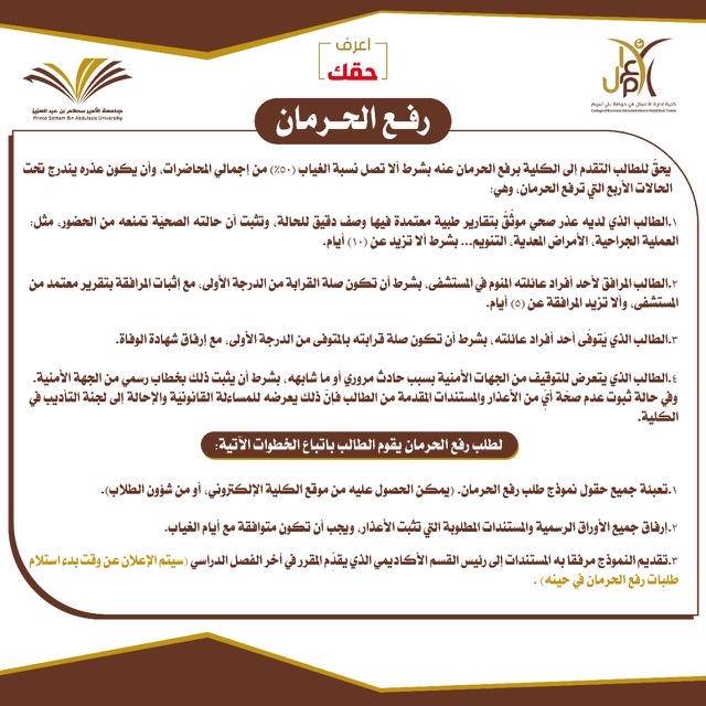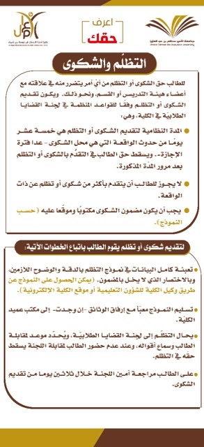 نظمت وحدة الإرشاد الأكاديمي في الكلية مبادرة توعوية تحت عنوان: (اعرف حقك)، تستهدف طلاب الكلية؛ لتوعيتهم بالأنظمة الأكاديمية وحقوق الطالب الجامعي.