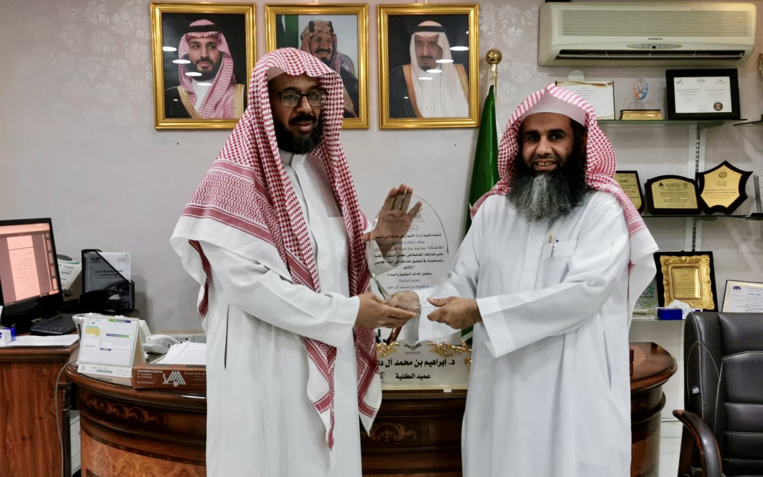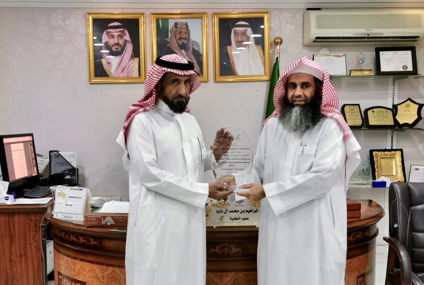 كرّم عميد الكلية د. إبراهيم بن محمد الداود أعضاء المجلس الاستشاري للكلية السابق، وذلك في يوم الأحد ١٤٤٣/١٠/٢١هـ.      هذا وقد أشاد د. الداود بجهود أعضاء المجلس الاستشاري، وحرصهم على تحقيق أهدافه، مقدّمًا شكره وتقديره لهم، وراجيًا لهم التوفيق والسداد.