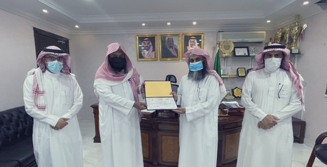 كرّم عميد الكلية د. إبراهيم بن محمد الداود بحضور وكلاء الكلية الطلابَ الفائزين والمشاركين في المرحلة الأولى من مسابقة مواهب (٦)، يومَ الأحد ١٤٤٣/٤/٩هـ.