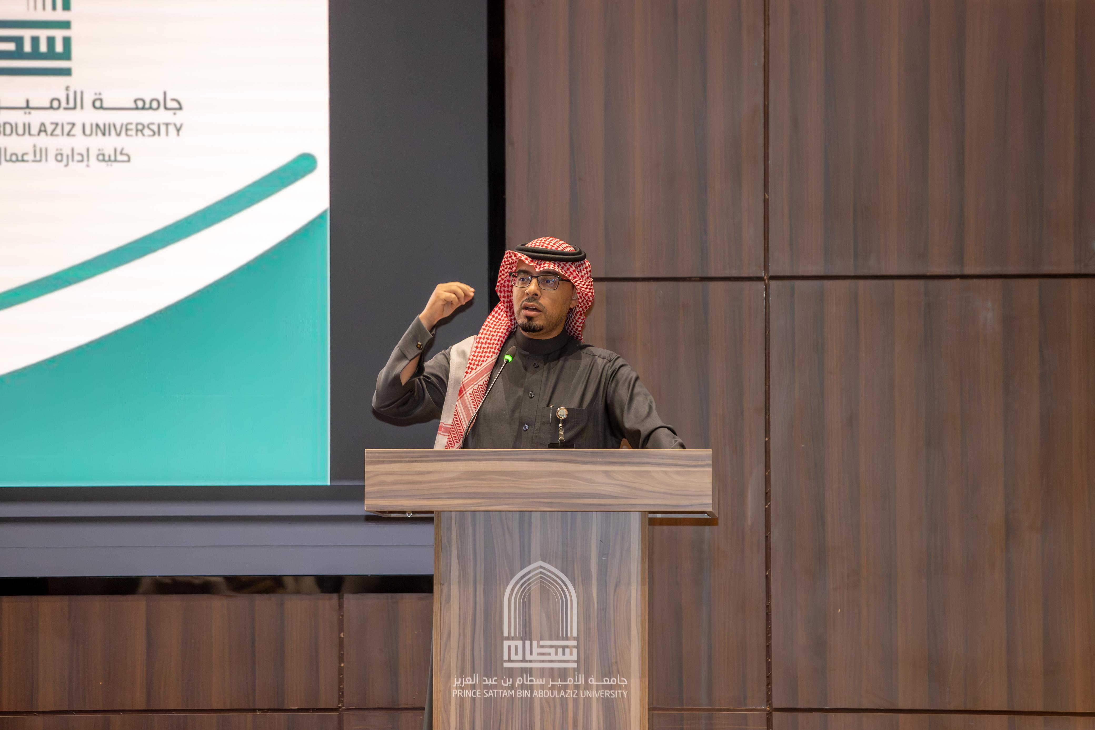 عقب ذلك، قدّم وكيل الكلية للشؤون التعليمية والأكاديمية د. إبراهيم آل مسلّم التميمي شرحًا لأبرز الإجراءات الأكاديمية، موضّحًا آلية الغياب والحرمان وكيفية احتسابها، إضافة إلى توضيح إجراءات الاعتذار عن المقرر أو الفصل، وتأجيل الفصل، وآلية التقديم عليها ومواعيدها.