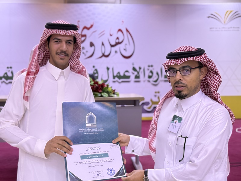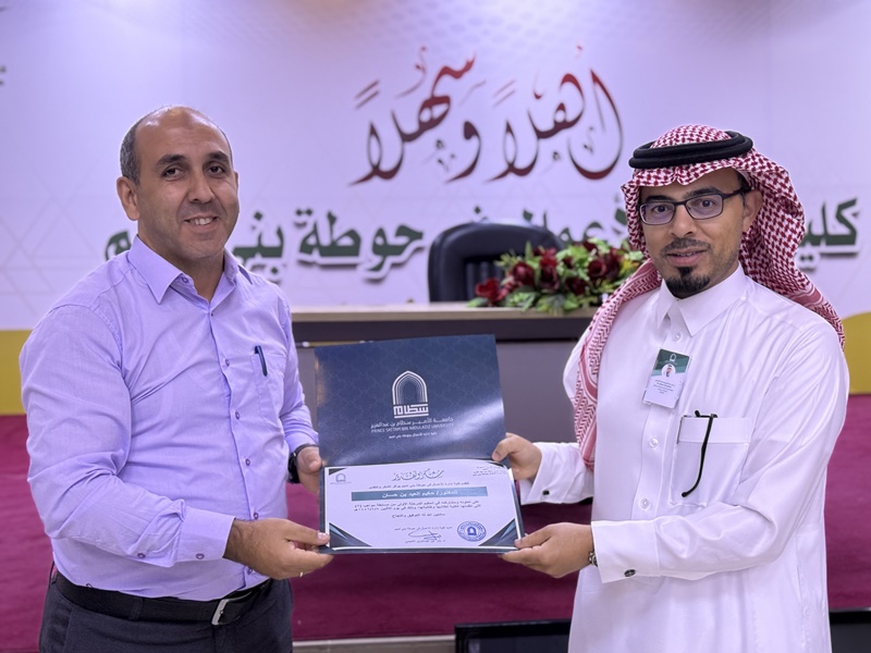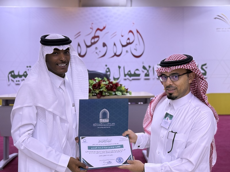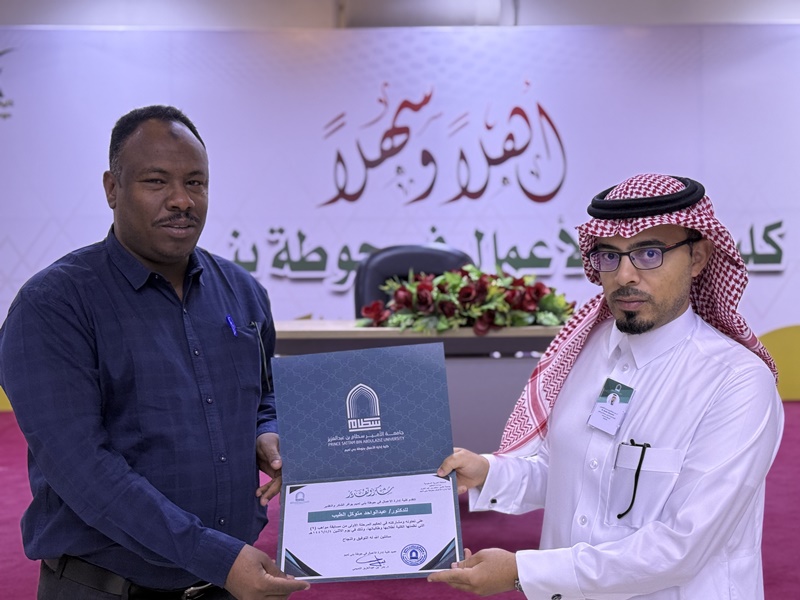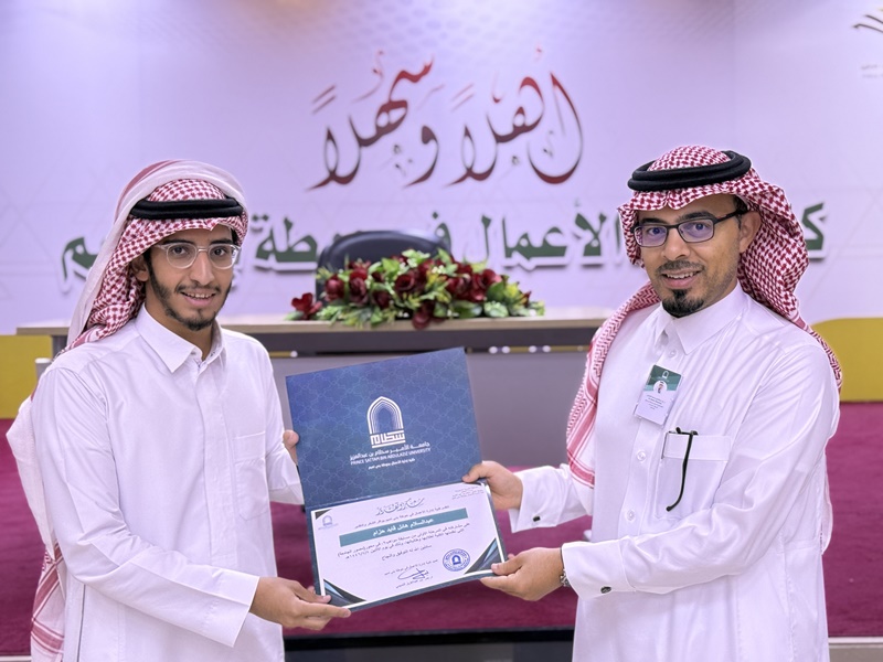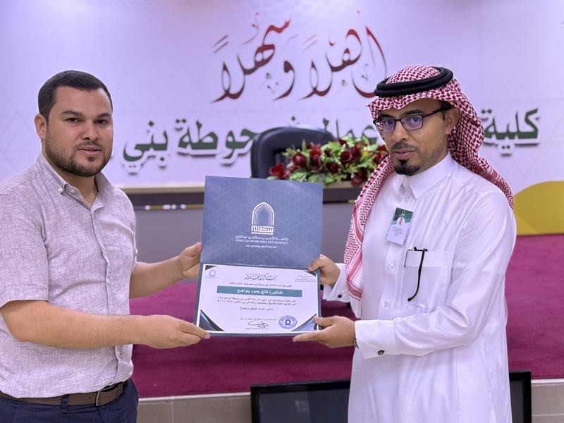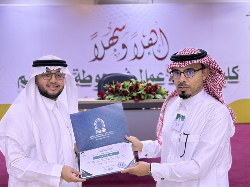 وفي ختام المسابقة شكر عميد الكلية د. بدر التميمي أعضاء لجنة التحكيم والمشاركين، مُقدّمًا لهم شهادات شكر وتقدير.