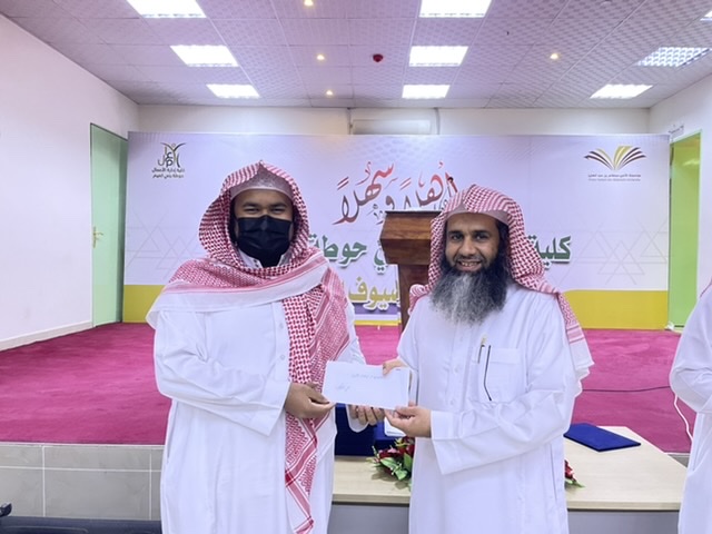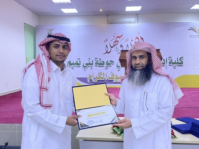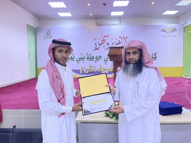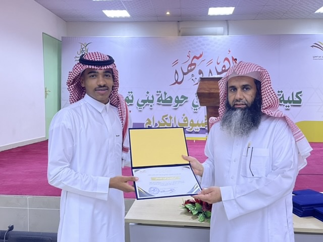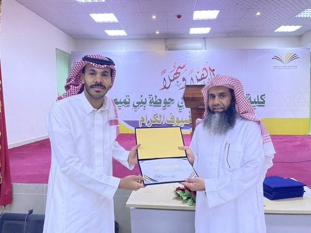 وفي ختام البرنامج كرّم عميد الكلية د. إبراهيم الداود أعضاء هيئة التدريس والموظفين والطلاب المشاركين في تنفيذ برامج وحدة الأنشطة الطلابية هذا العام. كما كرّم الطلاب الفائزين بمسابقة نجم الكلية.