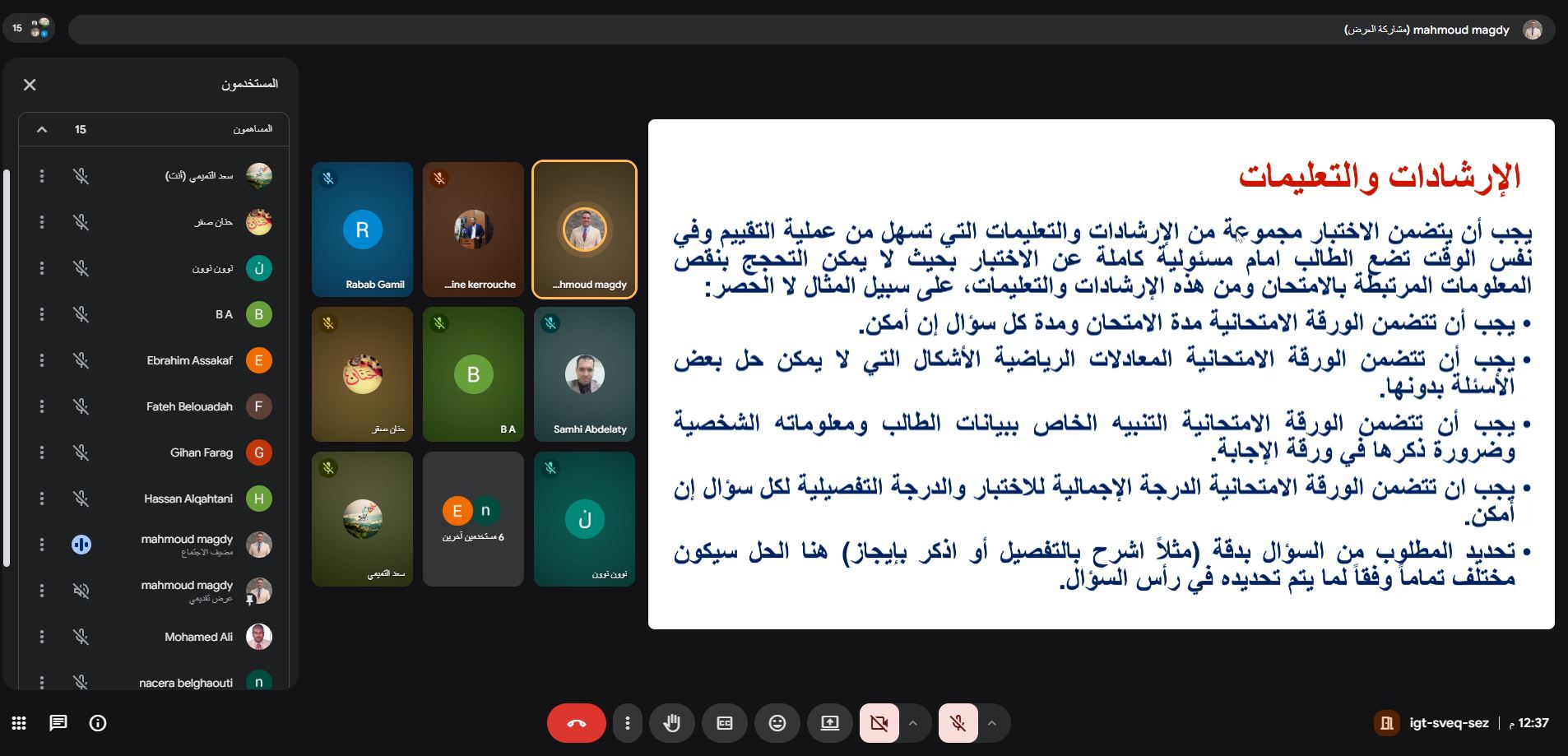نظمت الكلية، ممثلة بوحدة الإرشاد الأكاديمي، يوم الأربعاء الموافق 20/10/1447هـ، ورشة عمل بعنوان “إعداد الاختبارات الفعّالة ودورها الأكاديمي في دعم الطلبة”، قدمها الدكتور محمود مجدي عن بُعد، وبمشاركة عدد من أعضاء هيئة التدريس.