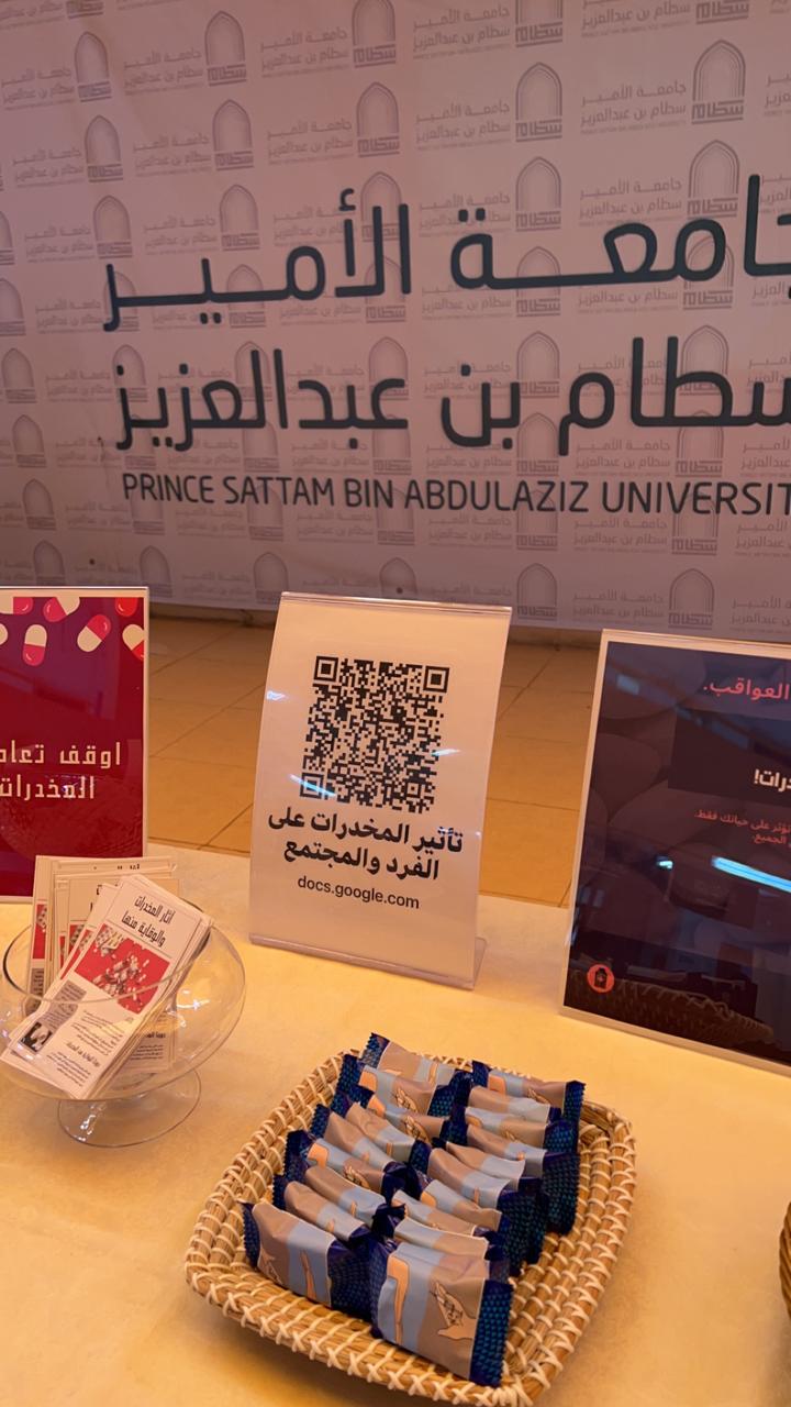 As part of its efforts to raise awareness of the extent of the impact of drugs and intoxicants on the individual and society, the Awareness Committee for Combating Smoking and Drugs at the College - female section, organized an awareness corner that summarizes and embodies the negative and serious effects that drugs leave on society, on Sunday, corresponding to 1/8/1445 AH, in the college courtyard, under the supervision of Ms. Al-Anoud Muhammad Al-Jadaan.