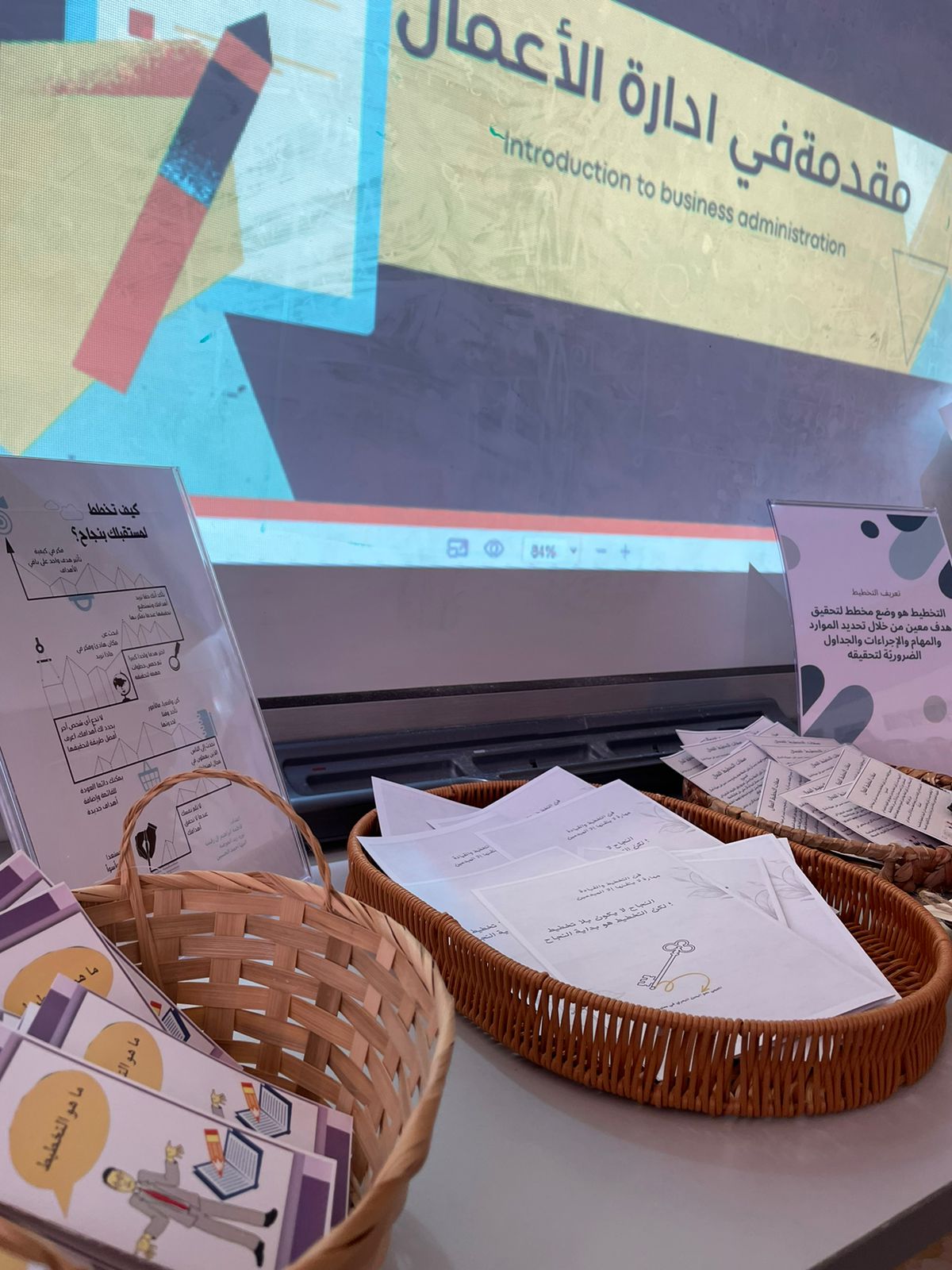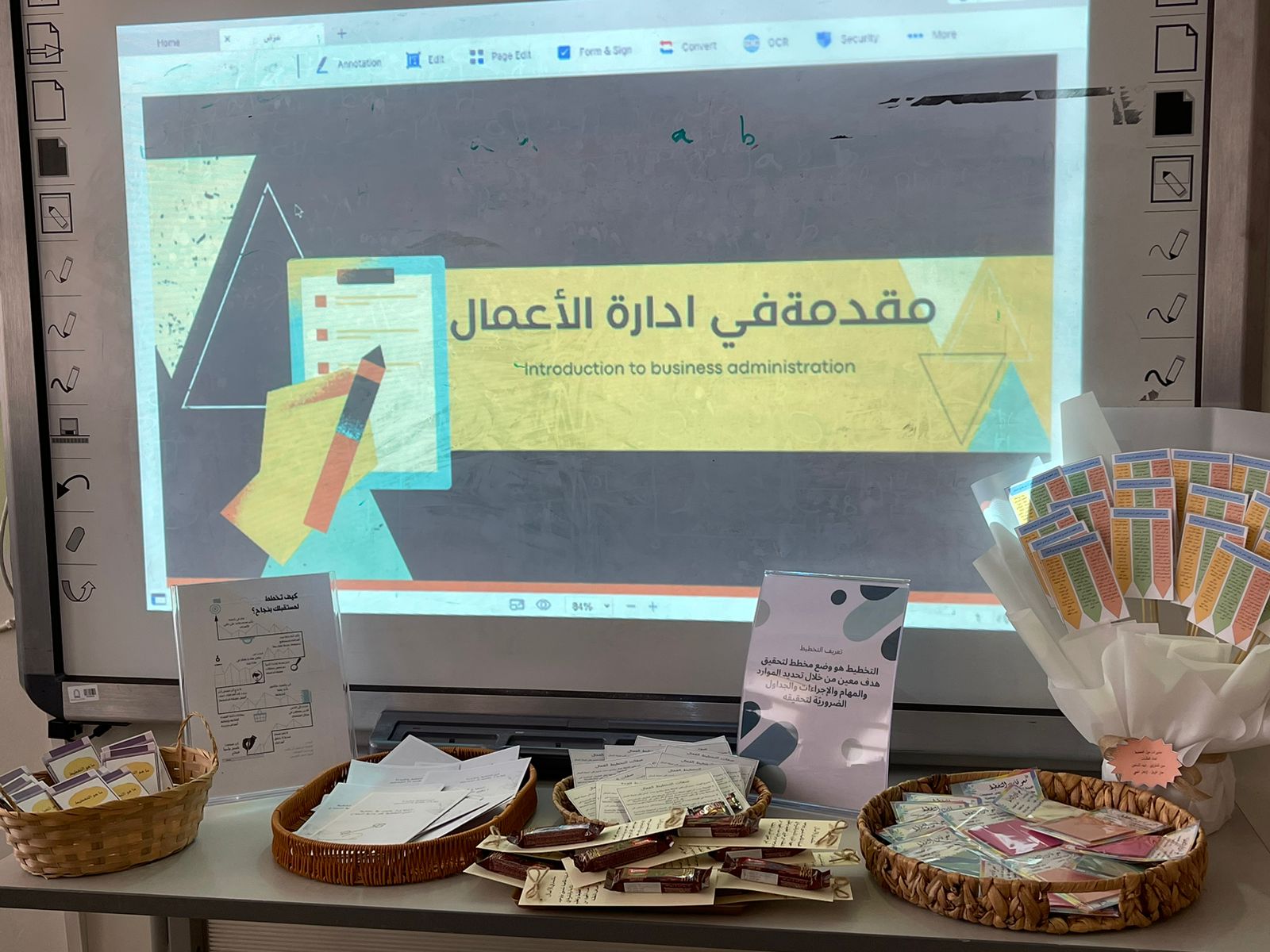The college’s female section organized a program entitled: ‘Introduction to Business Administration’ on Wednesday 17/4/1445 AH. The event took place in a hall where leaflets and banners were displayed to introduce the concept of planning, its characteristics and elements, and the obstacles hindering its way.