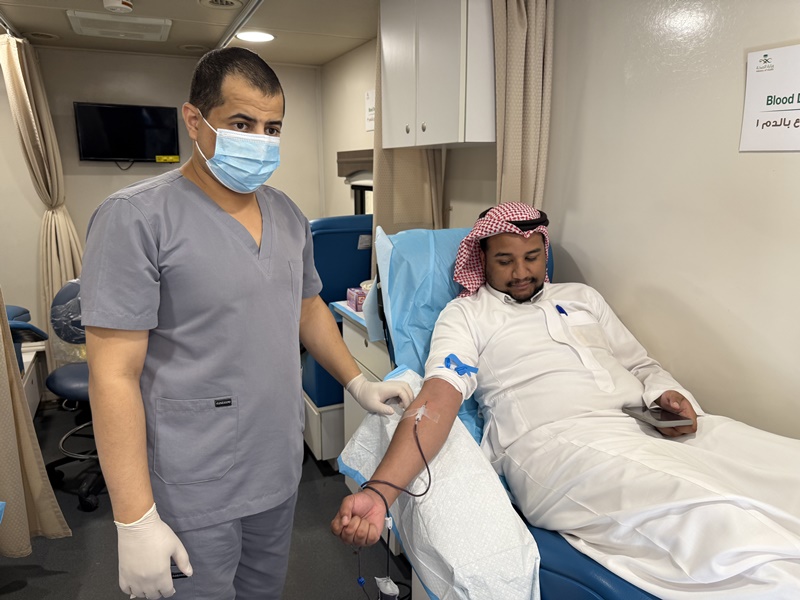 The campaign began with registering and screening donors to ensure their eligibility to donate blood, with a specialized medical team from Hotat Bani Tamim General Hospital overseeing the donation process and ensuring donor safety. A comfortable space was provided for donors, along with refreshments after the donation.