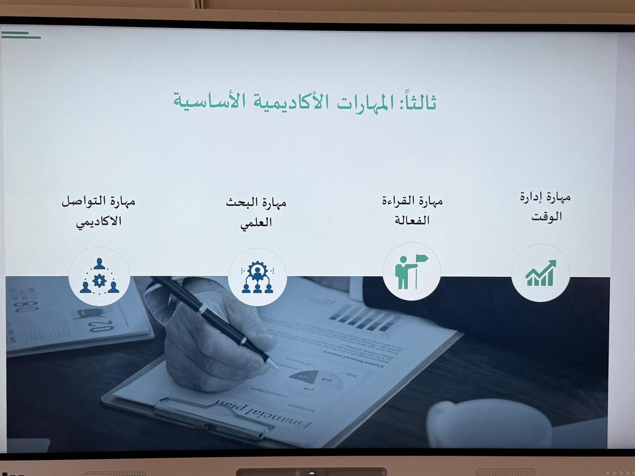 The college’s female campus, represented by the Guidance and Counseling Unit, organized a lecture titled “Enhancing Academic Skills” on Wednesday, 7/5/1447 AH. The session was delivered by Dr. Sarah Mostafa Al-Atta, aiming to support students in achieving balance across psychological, social, and academic dimensions—ultimately contributing to improved academic performance and better adaptation to university life.