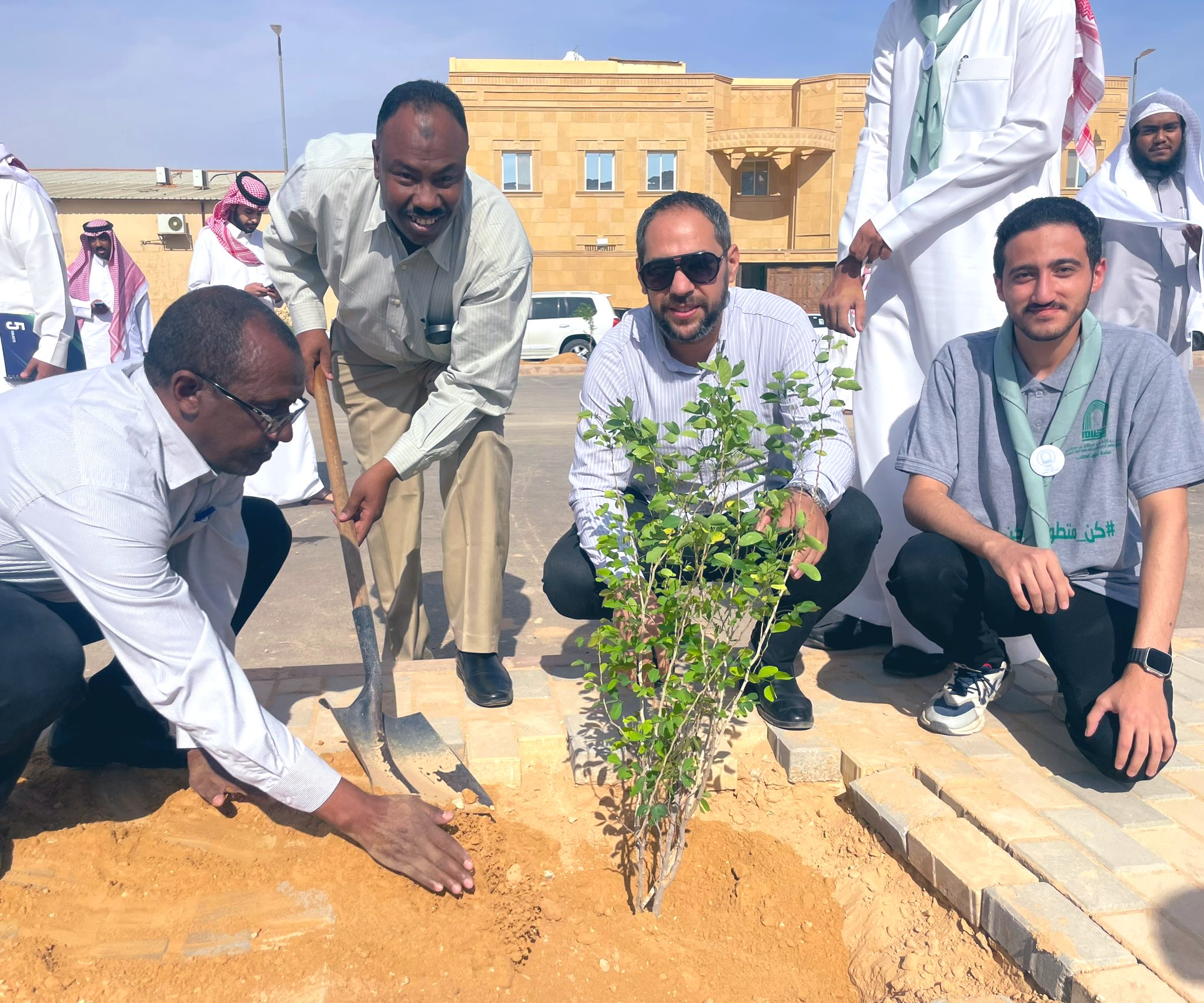 The college, represented by several of its students, faculty members, and employees participated in implementing the “Grow with Us” initiative. The college’s participation in the initiative embodies its ongoing efforts in community volunteer initiatives. The initiative, organized by Al-Hilwah Municipality in cooperation with several institutions in Hotat Bani Tamim Governorate, was held on Tuesday 14 /5 /1445 AH.