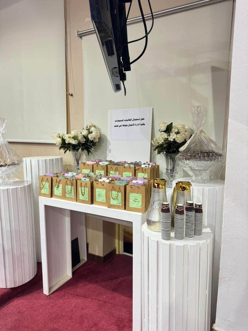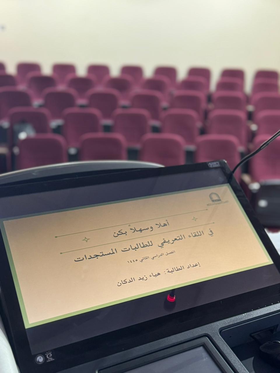 The college (female section) received its new female students who were accepted in the second semester of the academic year 1445 AH. The ceremony was held in the college theater in the presence of its vice dean, the supervisor of student activities, and a number of faculty members and students on Tuesday, corresponding to 18/8/1445 AH The ceremony included several segments aimed at introducing the students to the college and the services and activities it offers them. The ceremony began with reciting verses from the Holy Quran, then the vice dean of the college gave a welcoming speech on behalf of the dean of the college, where she congratulated the students on their acceptance and stressed the importance of diligence and perseverance in seeking knowledge and benefiting from the opportunities available to them in the college. She also gave them some practical tips on how to adapt to university life and overcome the challenges they may face. After that, Dr. Heba Al-Wishi explained the regulations and guidelines of the college and how to access and benefit from the university’s electronic portal. She answered the students’ inquiries about the study schedule, absence rates, academic calendar, and other topics related to the study. Finally, the supervisor of student activities spoke about the importance of participating in the cultural, artistic, and voluntary activities organized by the college, which contribute to developing the skills and talents of the students and enhancing the spirit of belonging and cooperation among them.