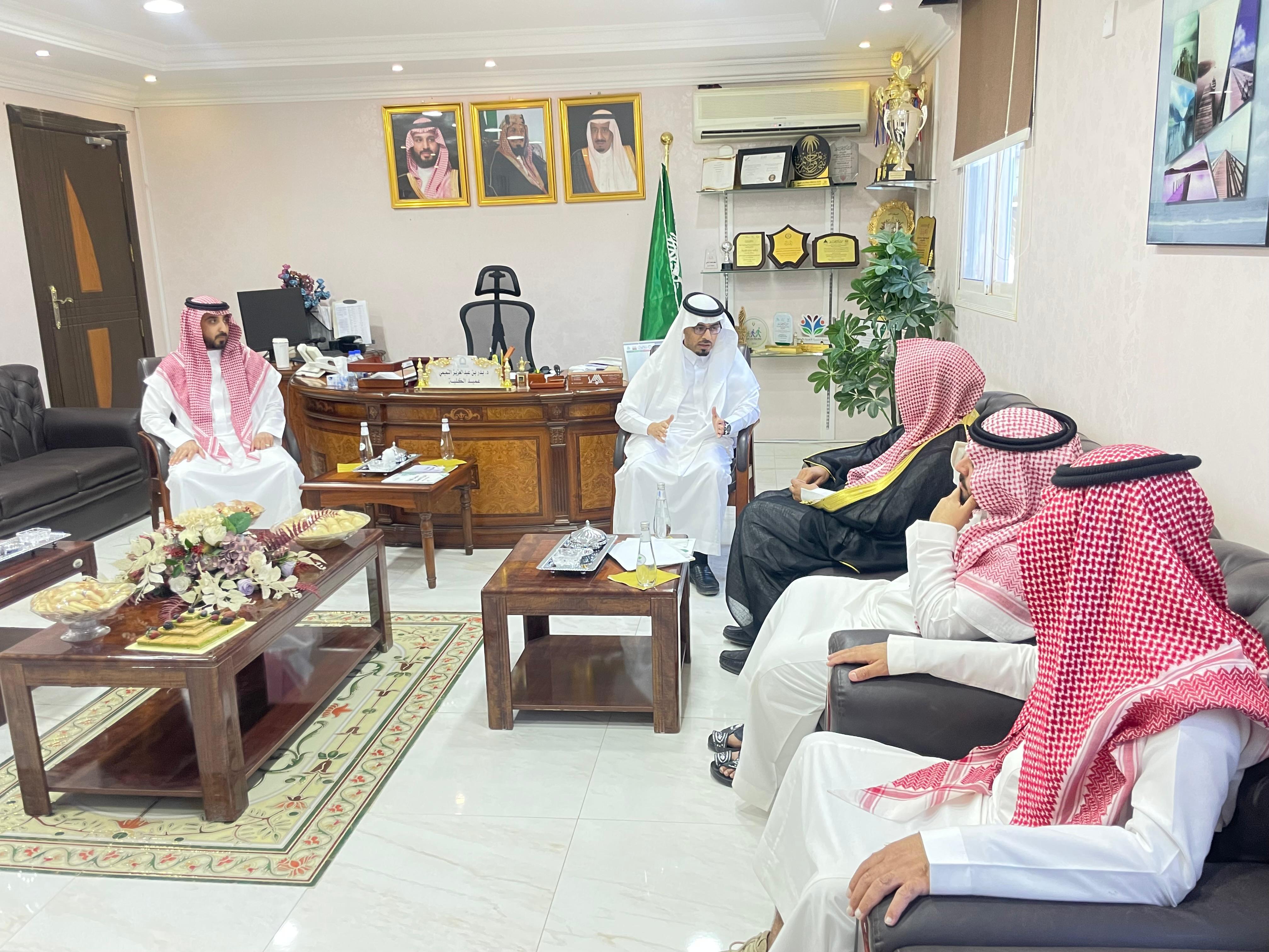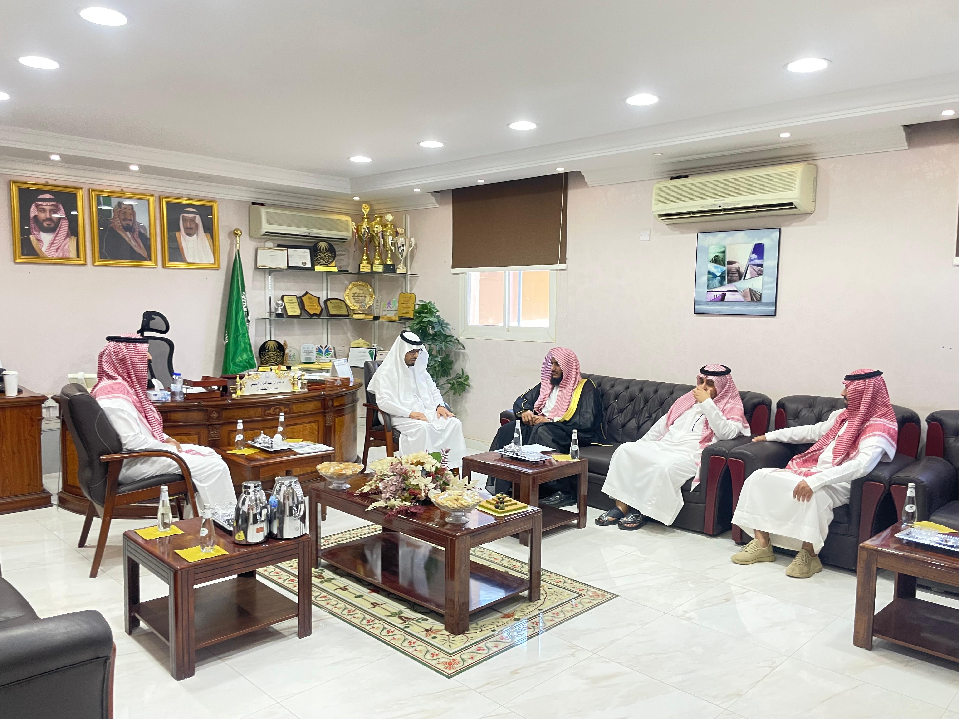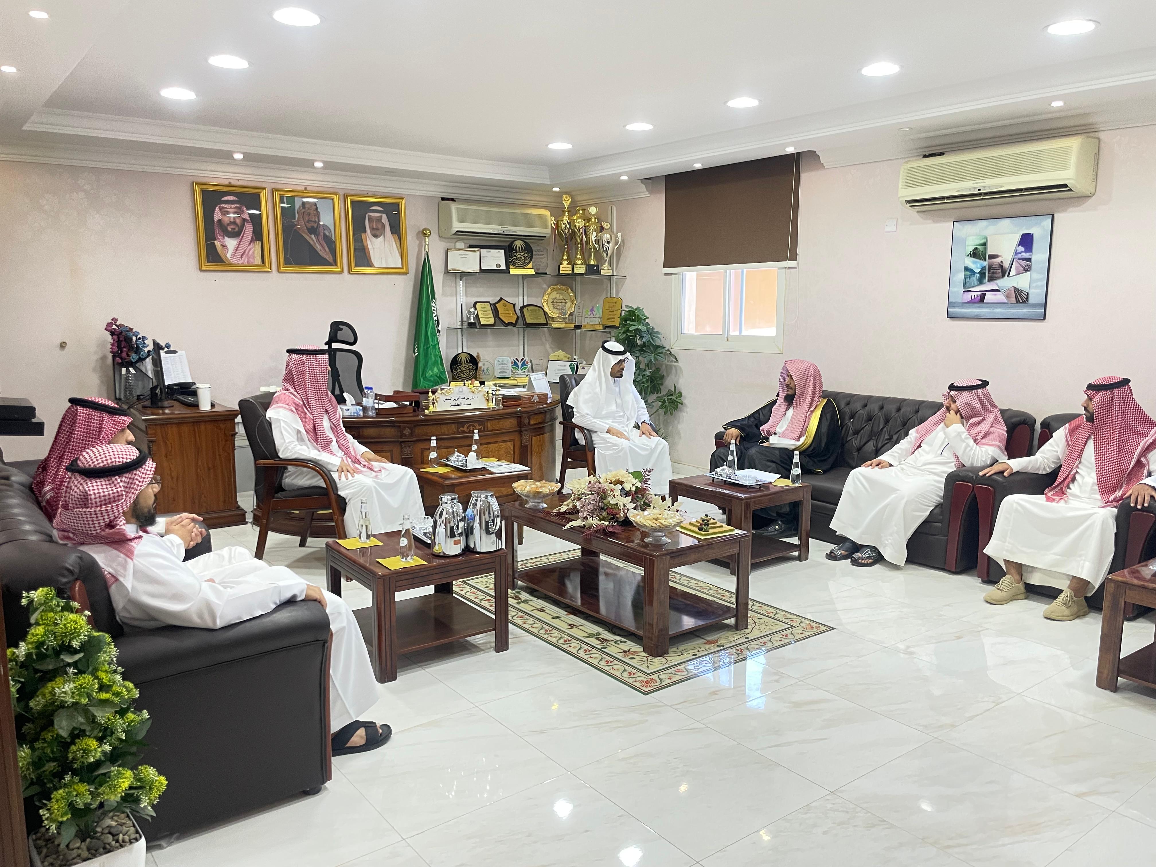 The Dean of the College, Dr. Badr Al-Tamimi, received a delegation from the branch of the Committee for the Promotion of Virtue and the Prevention of Vice in Hawtat Bani Tamim province, on Tuesday, 14/10/1445 AH. The delegation included the head of the committee, Sheikh Abdullah bin Abdulaziz Al-Kharif, the head of public relations, Mr. Mishal Al-Tamimi, and the head of the awareness and guidance department, Mr. Mutab Al-Tamimi.