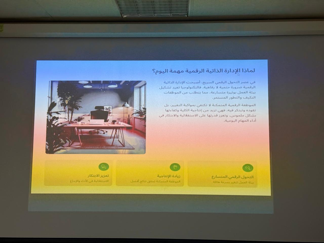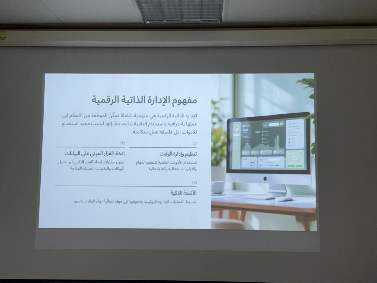 The session witnessed strong engagement from staff members and concluded with a "Digital Challenge" competition via Kahoot, reflecting participants’ awareness of the importance of digital empowerment in enhancing administrative performance.