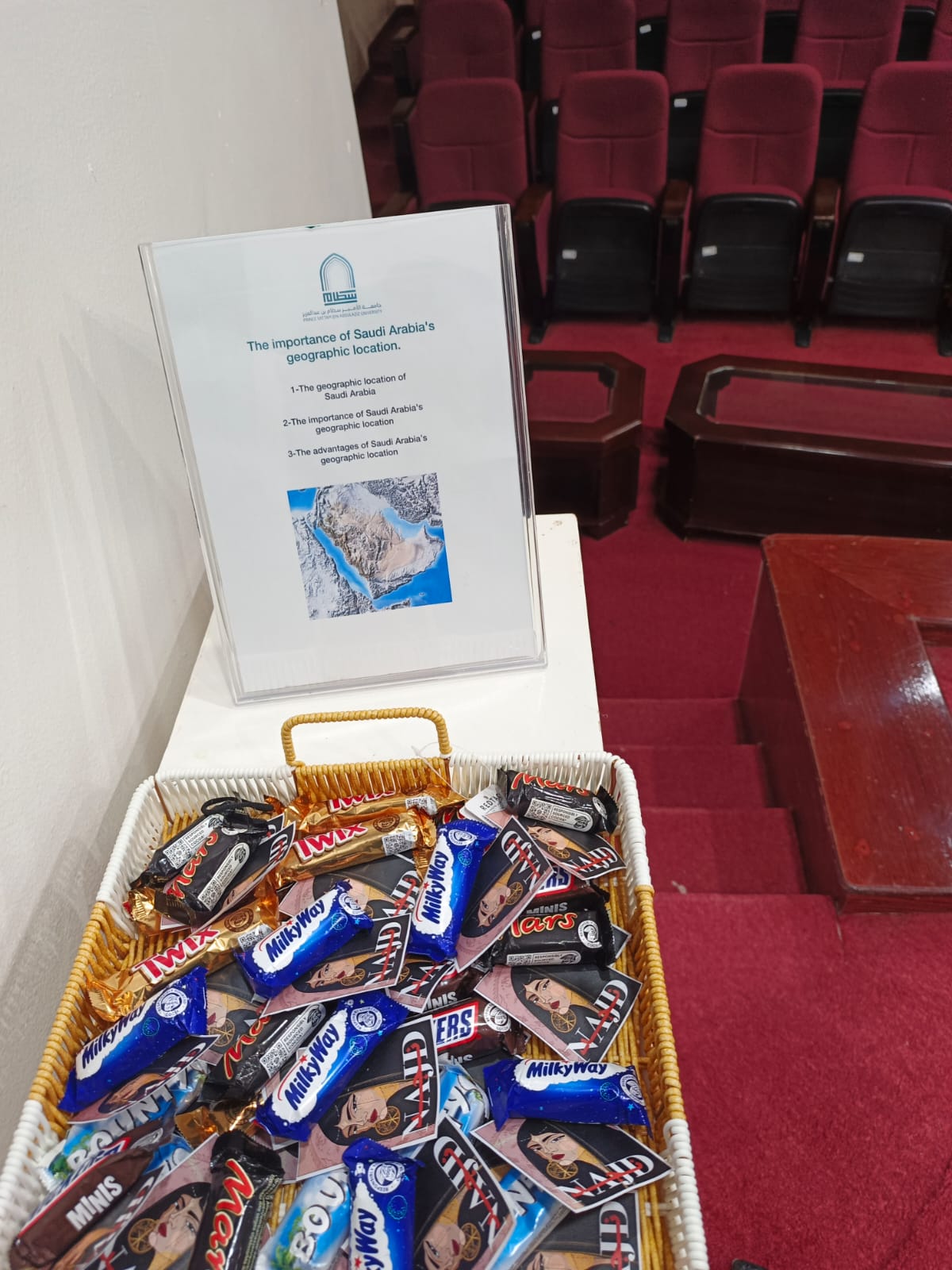 The college, represented by the Student Activities Unit, organized an event titled "Geographical Location of Saudi Arabia" on Wednesday, 13/4/1446 AH. The event showcased the geographical features of Saudi Arabia in English, aiming to improve the speaking and listening skills of the students. The event was attended by a large number of faculty members and students, and it was well-received by all.