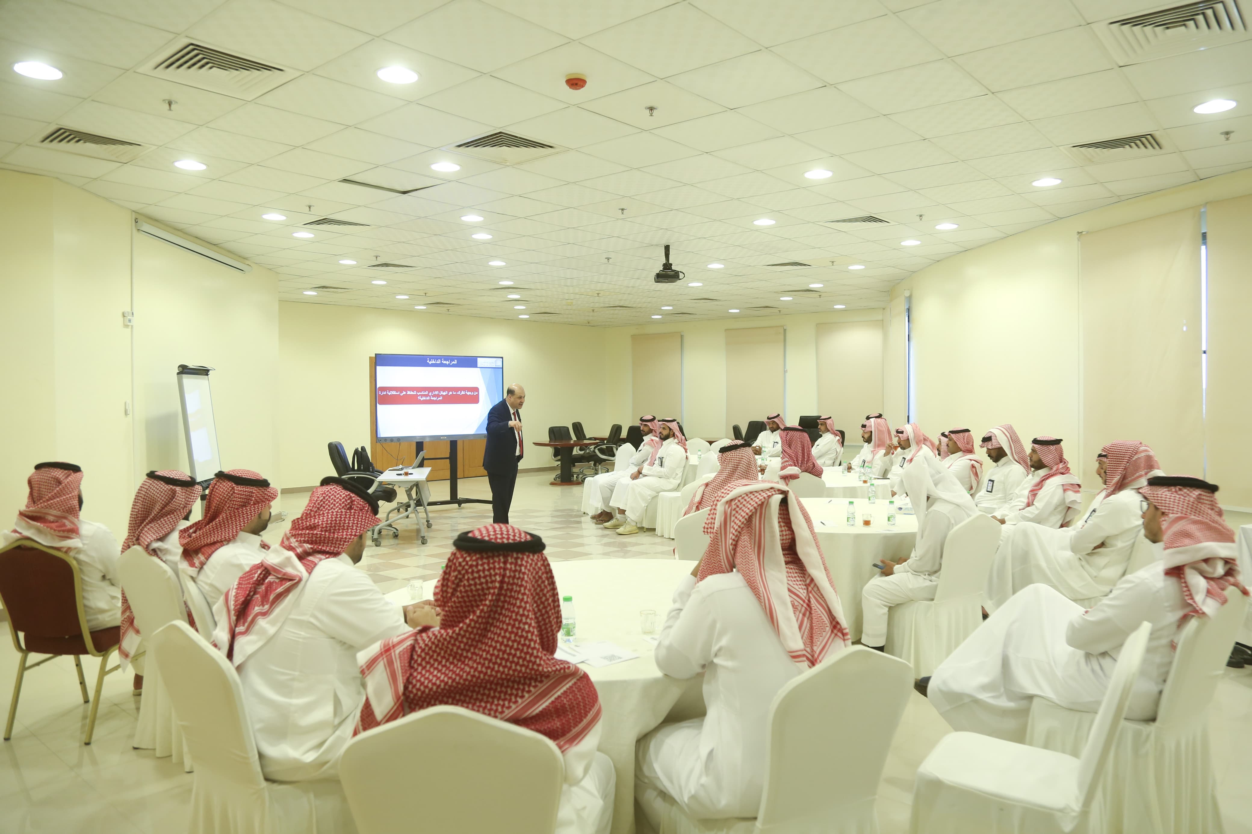The college organized a training program titled "Internal Audit" on Wednesday, 15/3/1446 AH, for the employees of Hotat Bani Tamim Municipality. The program was presented by Dr. Ibrahim Ali Al-Saqqaf, Assistant Professor in the Department of Accounting at the college. The program aims to introduce participants to the concept and objectives of internal audit, as well as to highlight the similarities and differences between internal and external audit. Additionally, the program discussed the relationship of internal audit with related departments and entities, provided an overview of the professional framework for internal audit, the organizational structure of internal audit, and the ethics of the internal audit profession.