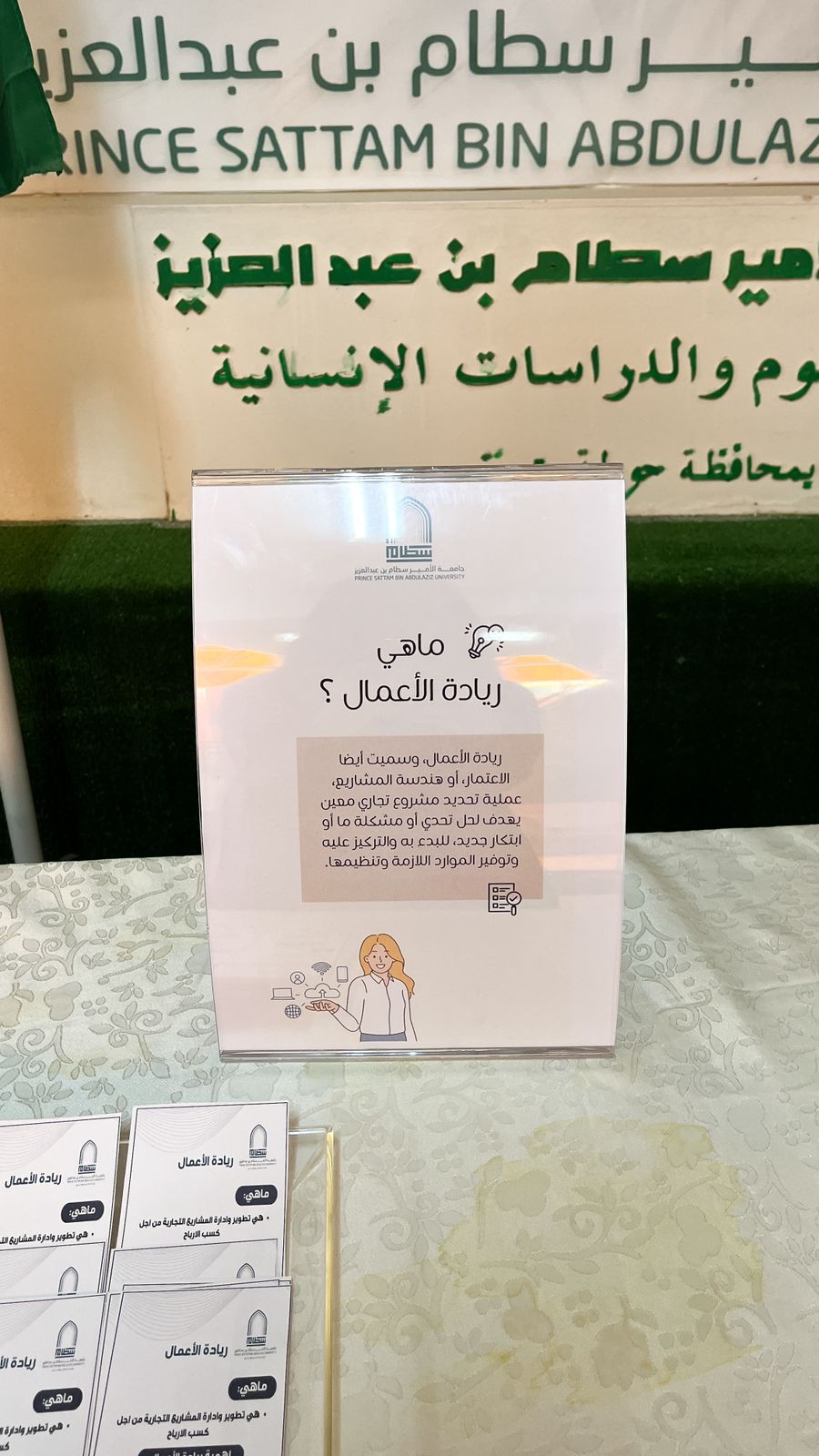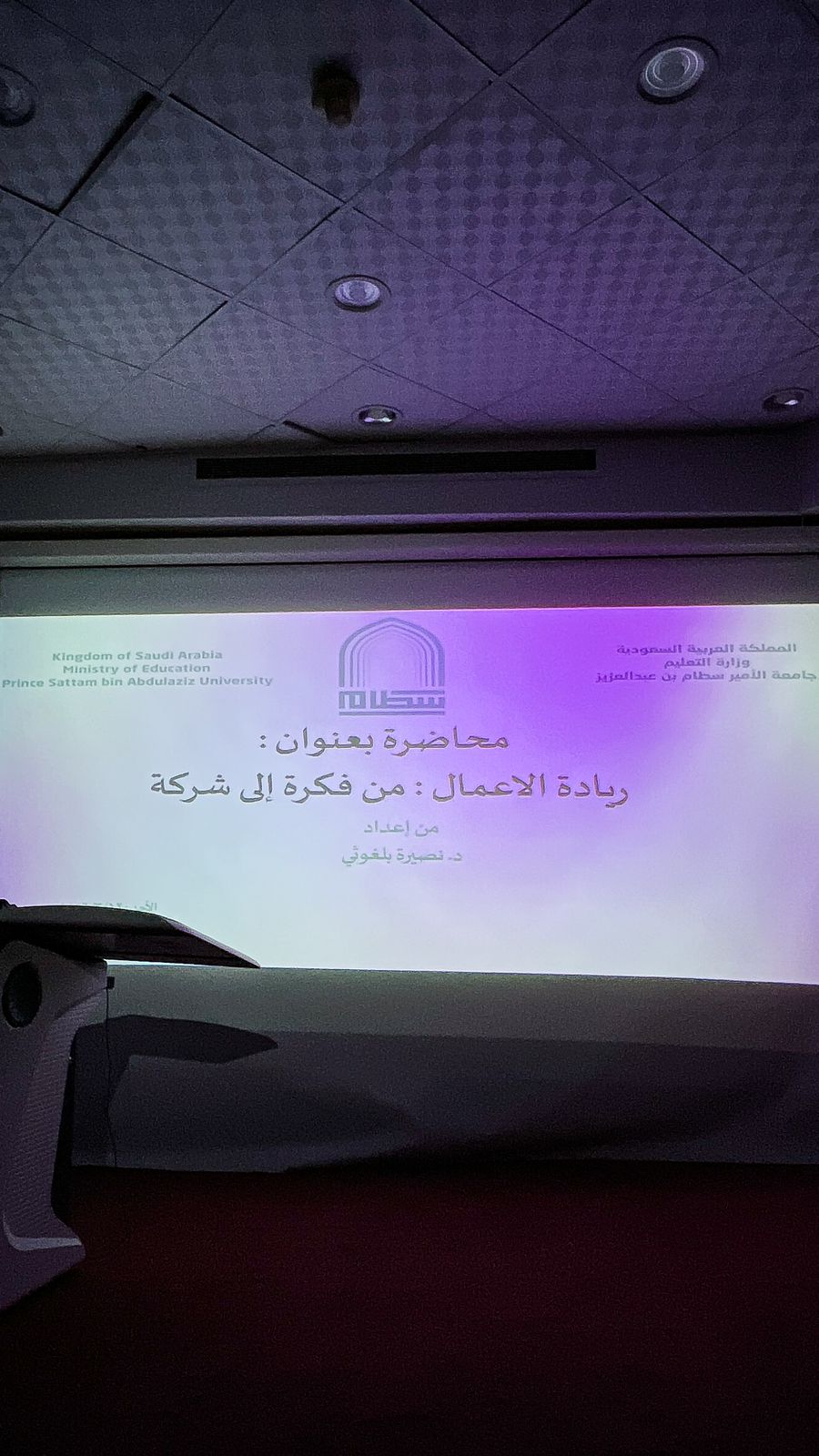 Additionally, the lecture covered the entrepreneurship ecosystem in Saudi Arabia, highlighting the support and efforts provided to encourage youth entrepreneurship, emphasizing its opportunities and importance to the Kingdom's economy. The lecture concluded by encouraging students to seize these opportunities and venture into the world of entrepreneurship.