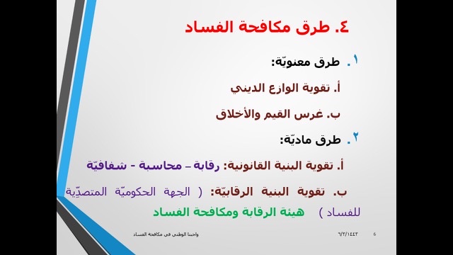 كما أوضح د. الذيابي أسباب انتشار الفساد، وأضراره، واختتم المحاضرة بذكر طرق مكافحته، مُشيدًا بجهود الدولة في مكافحة الفساد.