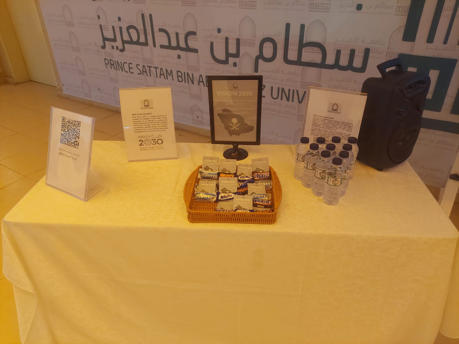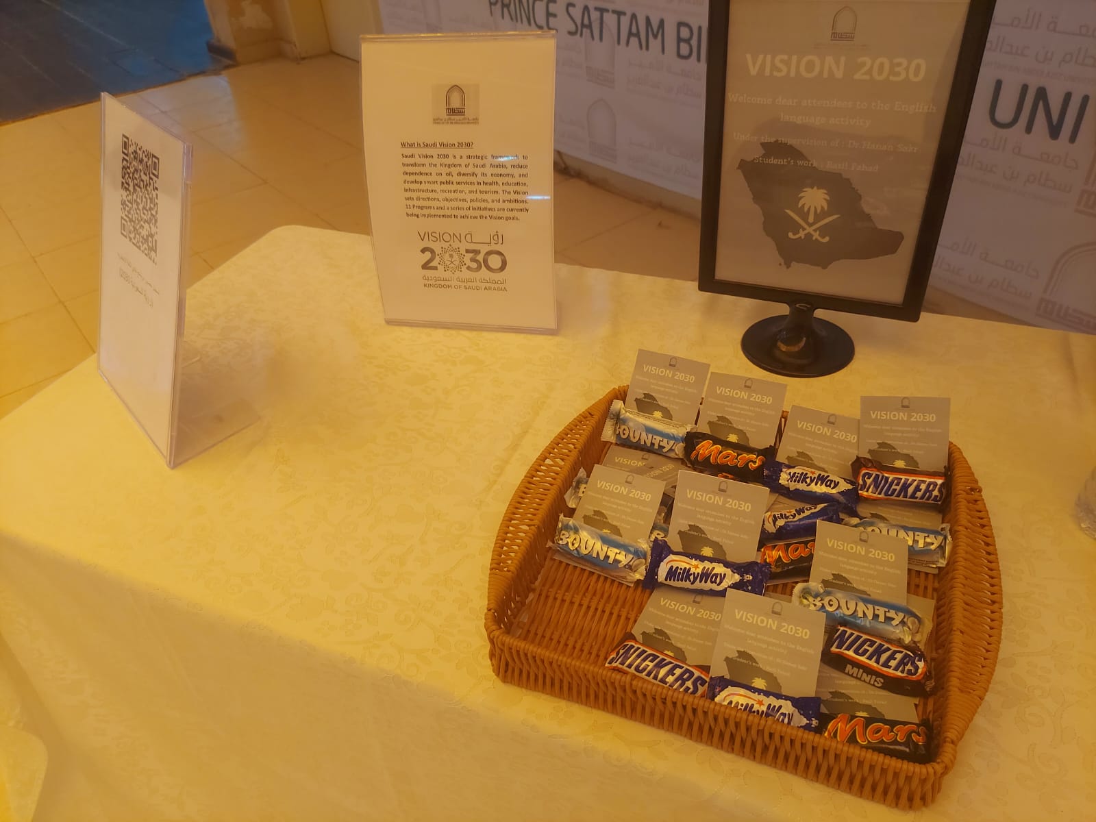 The college, represented by the English Club, organized a lecture titled "Saudi Vision 2030" in English on Tuesday, 14 Rabi' al-Awwal 1446, at 9:30 AM in the college courtyard. Additionally, a booth was set up to distribute brochures introducing students to the English Club, its goals, and its programs. The event was attended by a large number of college staff and students, and it was well-received by all.