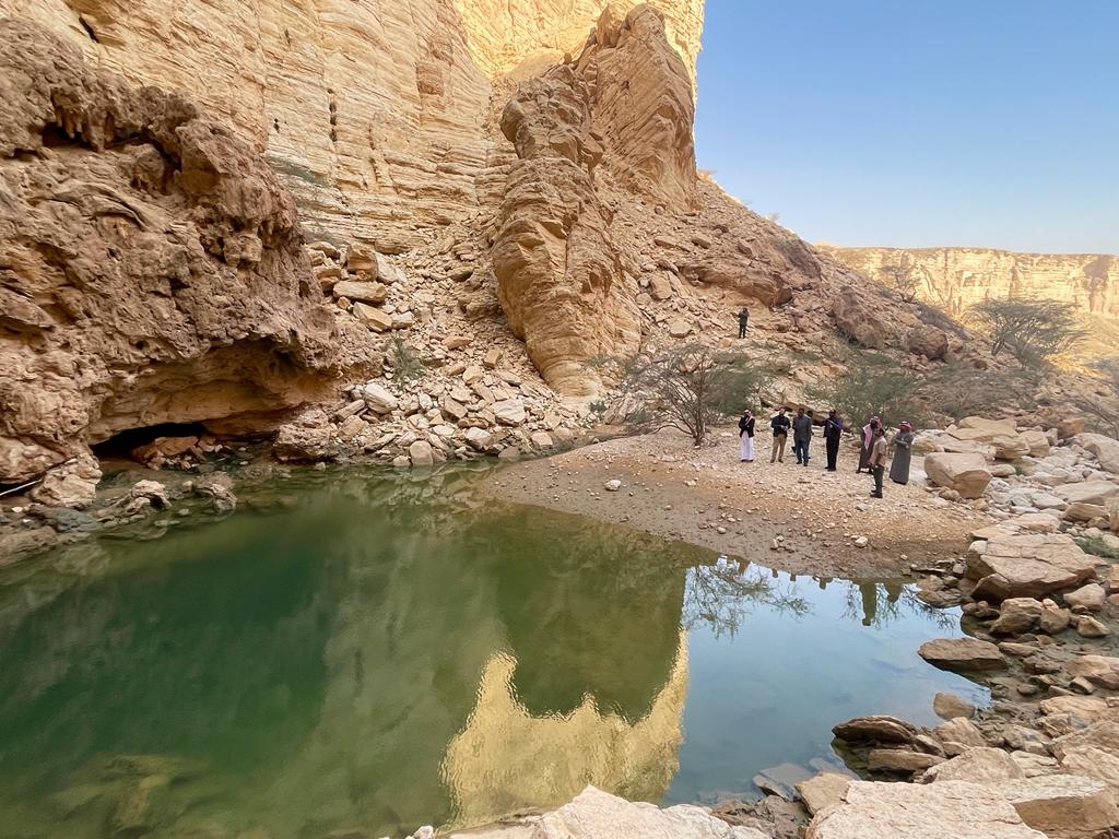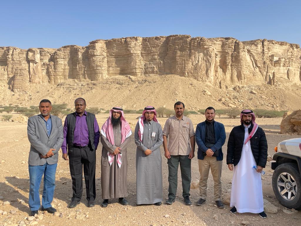 A team from the college of Business Administration, led by the dean Dr. Badr bin Abdulaziz Al-Tamimi, visited the Elk Reserve in Hotat Bani Tamim Tuesday 1444/6/17 AH . The visit included a discussion about ways of cooperation between the college and the Reserve to achieve the common goals of raising environmental awareness and preserving the environment. The visit also included a tour of the reserve. The team listened to a brief talk from the director of the Elk Reserve; Mr. Qais bin Saud Al-Hazza on the history of the reserve, its area, and the animal and plant resources it has. The visit comes to activate the college role in cooperating with other government agencies in the governorate to implement voluntary programs and initiatives that serve the community.