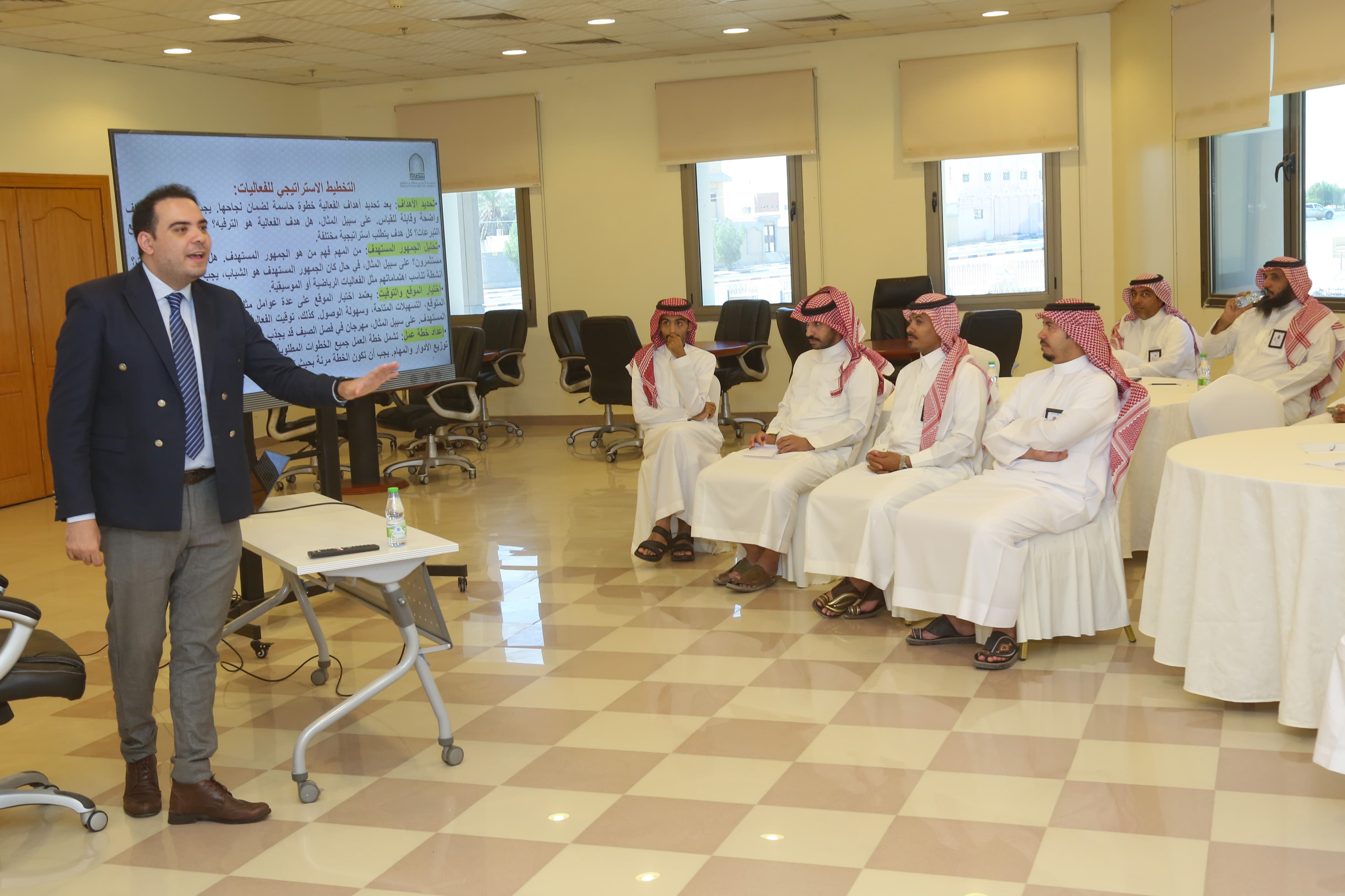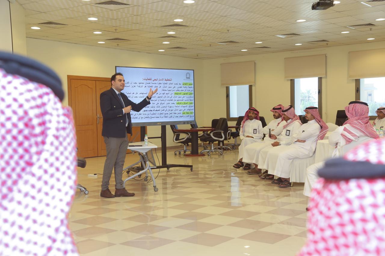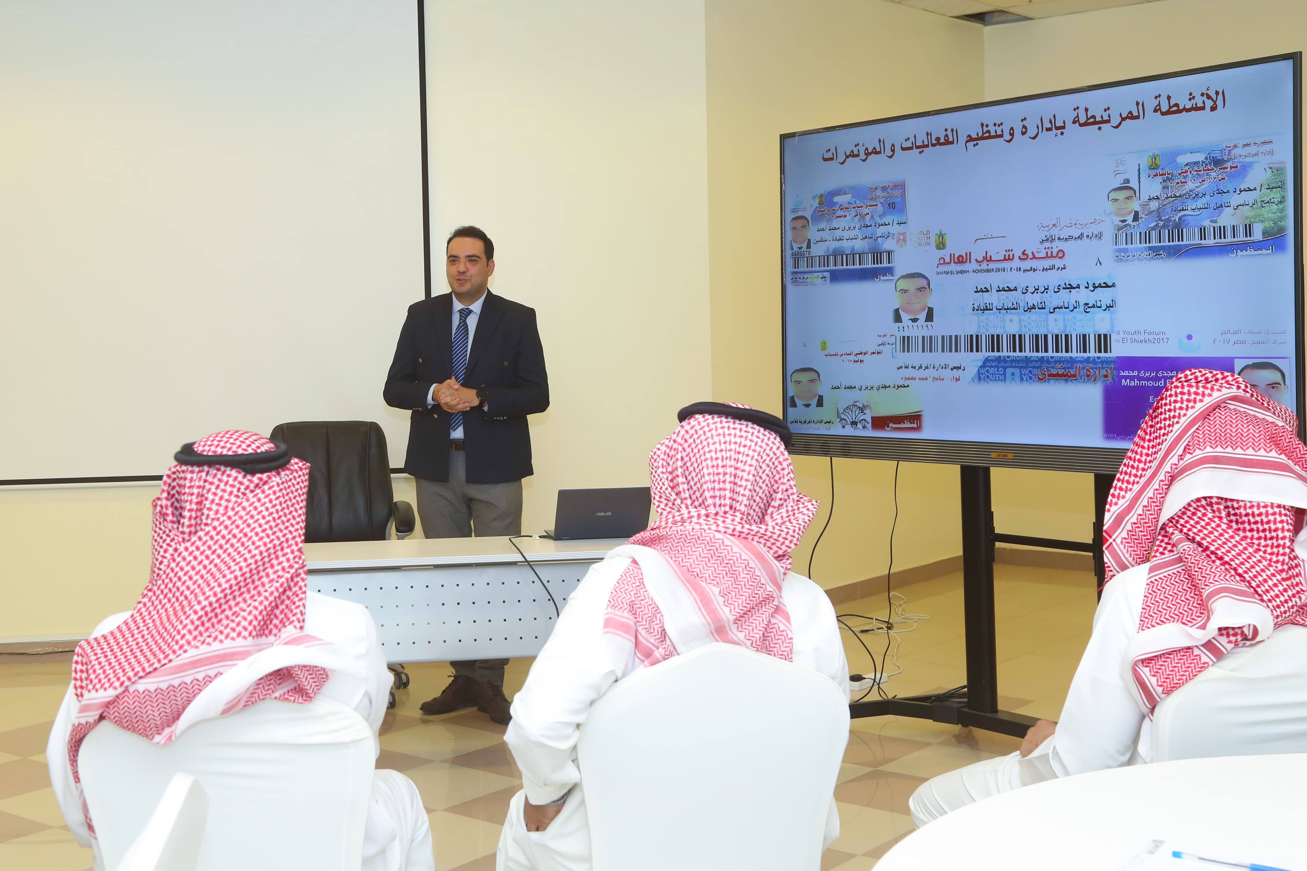 The college, represented by the Community Service Unit, organized a training course titled "Organizing Festivals, Events, and Crowd Management," presented by Dr. Mahmoud Magdy Barbari, Assistant Professor of Economics in the Finance Department. The course aims to provide participants with a comprehensive understanding of the basic principles of organizing and managing events and crowds, in addition to acquiring the practical skills necessary to organize successful events at the municipal or provincial level.