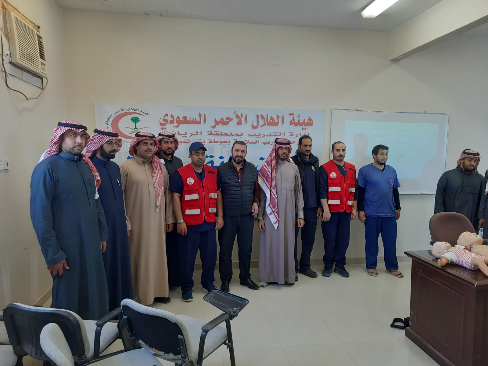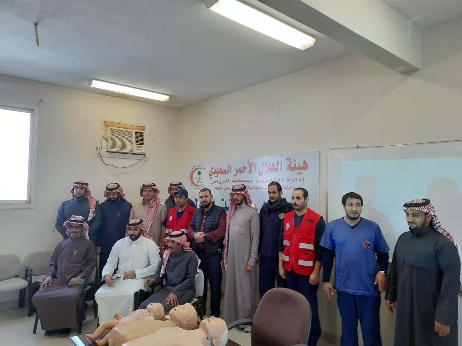 The college implemented a training program for employees of the Red Crescent Authority in Hotat Bani Tamim, under the title: (Rescue and First Aid Terms), presented by Dr. Ghassan Nawaf Jabr Al-Homoud, Assistant Professor at the College, over a period of two weeks, starting from Sunday AH1444/6/29.