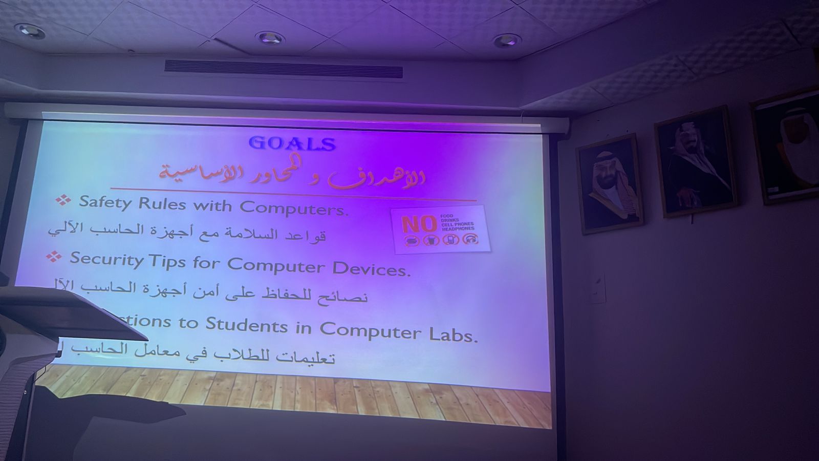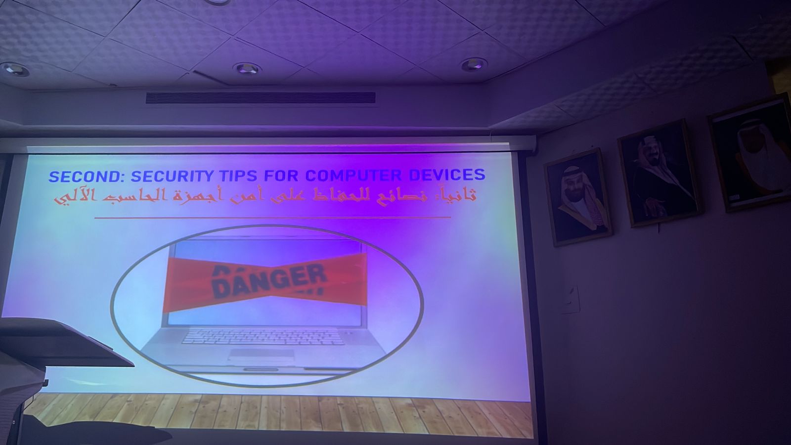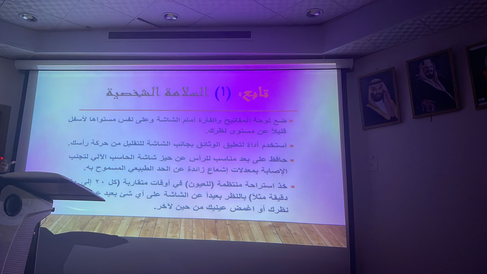 The college organized a workshop under the title "Security and Safety in Computer Devices" on Tuesday, 24/8/1445 AH, presented by Dr. Hanan Hassan Saqr. The workshop addressed the importance of computers and how to handle them safely, whether they are new or old, to solve technical problems and overcome challenges. Dr. Hanan highlighted the basic safety rules and the main objectives to maintain user safety. The workshop was met with significant interaction from the attendees and concluded with an active Q&A session where Dr. Hanan answered the students' questions regarding digital security and maintaining safety while using computers