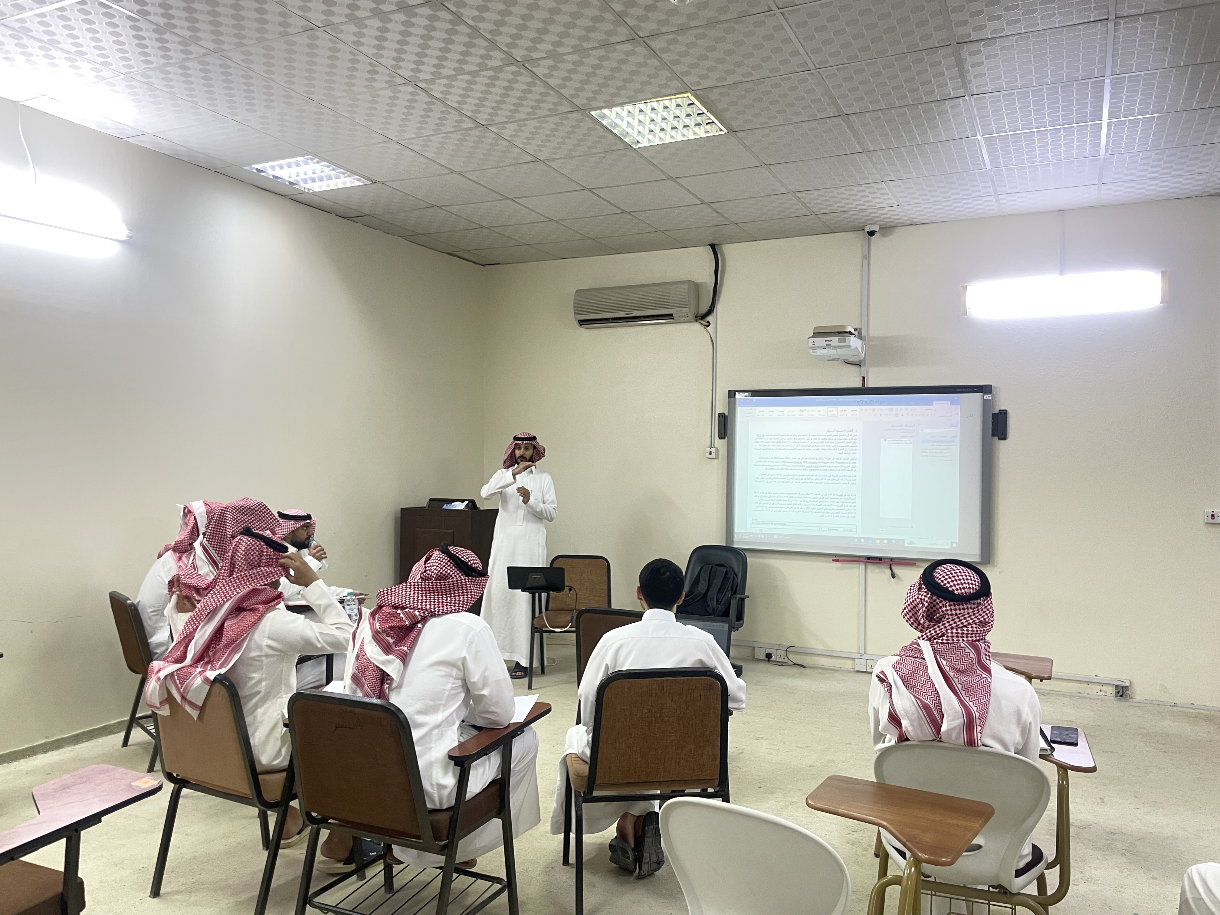 The college organized a workshop titled (Analysis of the Questionnaire Using SPSS Program) on Sunday, 12/10/1445 AH, presented by Dr. Mohammed Al-Askar, Assistant Professor in the Department of Accounting. This workshop, which is part of a series of educational events aimed at students working on graduation projects, aims to enable students to master the skills of analyzing statistical data. Dr. Al-Askar emphasized the importance of this workshop in providing students with the necessary tools to conduct accurate and reliable analyses, which is essential for the success of their research projects and the development of their scientific and practical skills