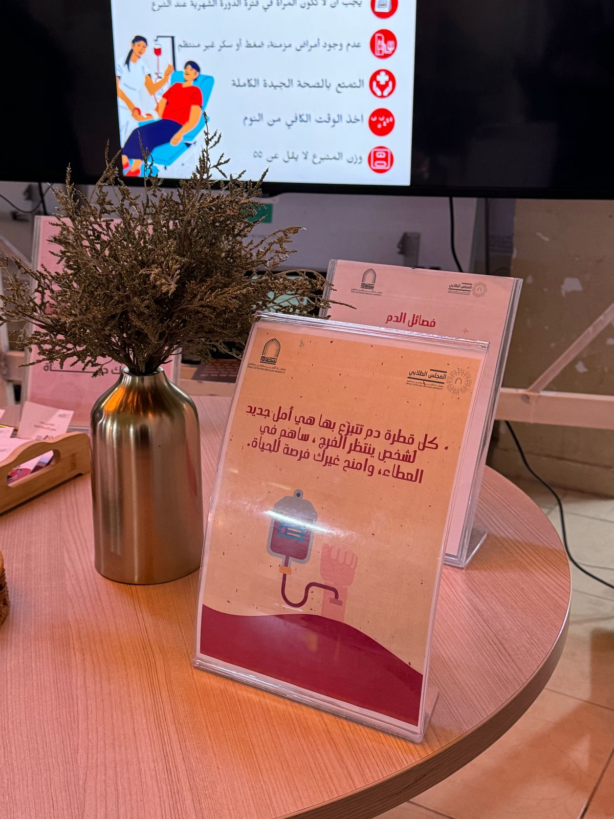 The "Your Blood, Your Life" initiative aims to raise awareness about the importance of blood donation and encourage students to contribute to saving lives through this noble humanitarian act. The event included a set of awareness and interactive activities, where the names of the volunteers willing to donate blood were registered, in preparation for arranging a visit to the hospital to complete the donation process.